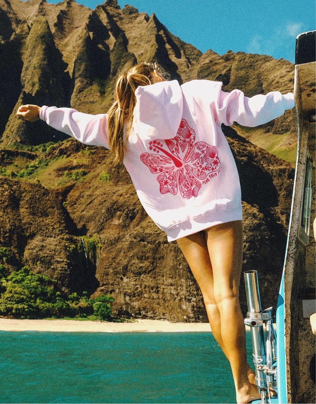 The PPP palm embroidered above our hearts is a symbol of unity within the Pink Palm Puff community, reminding us all of the love we share.